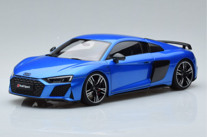 A 1:18 scale model measures approximately 25-28 cm (approximately 10-11 inches). The Audi R8 Performance Azul Kengfai 1:18 is perfect for display in a glass cabinet or on a shelf.