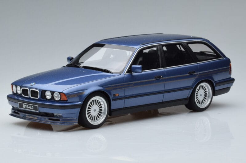 The BMW Alpina B10 E34 4.0 Touring Azul Otto 1:18 is crafted from Resina. High-quality resin with hand-painted details and limited production runs. Resin models offer exceptional detail and are prized by serious collectors for their craftsmanship.