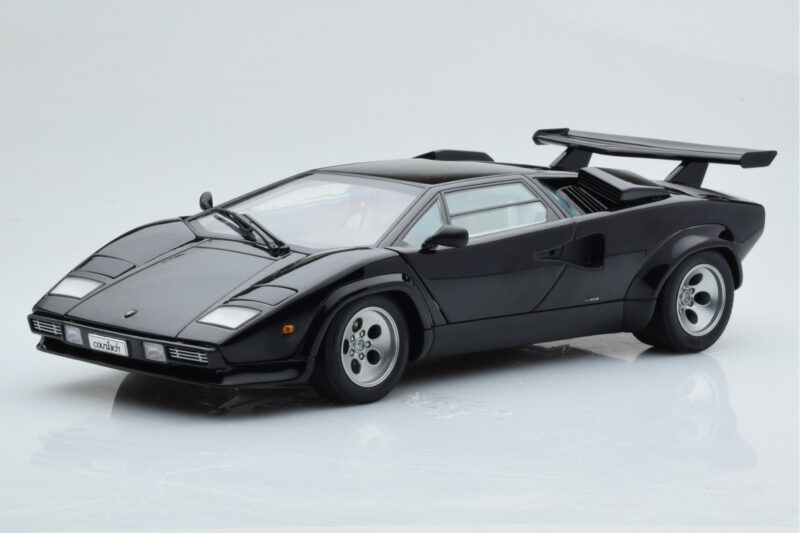 The Lamborghini Countach LP5000S Negro AUTOart 1:18 is crafted from Metal. Die-cast zinc alloy body with detailed plastic parts, rubber tires, and high-quality paint finish. Die-cast models are known for their weight, durability, and realistic feel.