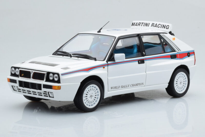 The Lancia Delta HF Integrale 6 Blanco Kyosho 1:18 is crafted from Metal. Die-cast zinc alloy body with detailed plastic parts, rubber tires, and high-quality paint finish. Die-cast models are known for their weight, durability, and realistic feel.