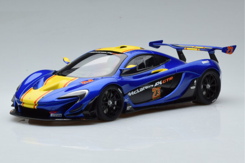 The McLaren P1 GTR Azul Con Franjas Amarillas AUTOart 1:18 is crafted from Compuesto. High-quality Compuesto construction with detailed finishing.