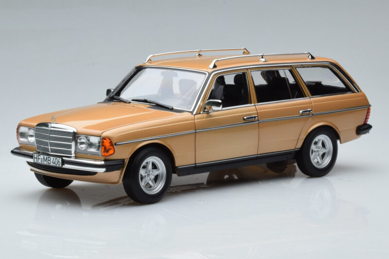 The Mercedes 200T S123 AMG Package Beis Norev 1:18 is crafted from Metal. Die-cast zinc alloy body with detailed plastic parts, rubber tires, and high-quality paint finish. Die-cast models are known for their weight, durability, and realistic feel.