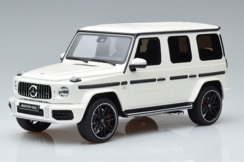 The Mercedes AMG G63 W463 Blanco GT Spirit 1:18 is crafted from Metal. Die-cast zinc alloy body with detailed plastic parts, rubber tires, and high-quality paint finish. Die-cast models are known for their weight, durability, and realistic feel.