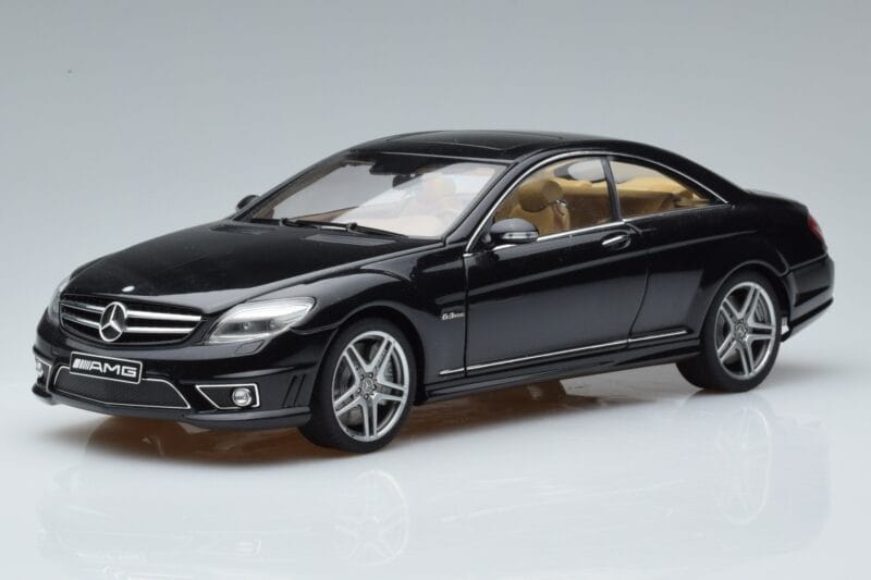 The Mercedes CL63 AMG C216 Negro AUTOart 1:18 is crafted from Metal. Die-cast zinc alloy body with detailed plastic parts, rubber tires, and high-quality paint finish. Die-cast models are known for their weight, durability, and realistic feel.