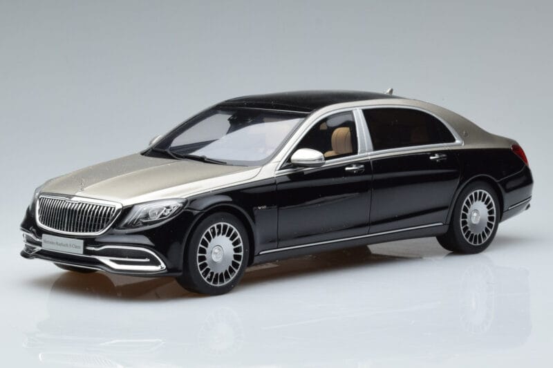 A 1:18 scale model measures approximately 25-28 cm (approximately 10-11 inches). The Mercedes Maybach S600 W222 Negro Plata GT Spirit 1:18 is perfect for display in a glass cabinet or on a shelf.