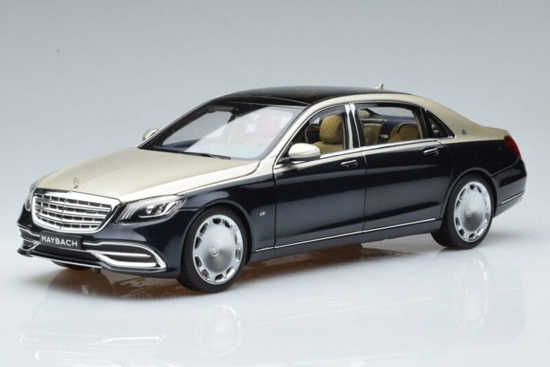 The Mercedes Maybach S650 X222 Azul Plata Norev 1:18 is crafted from Metal. Die-cast zinc alloy body with detailed plastic parts, rubber tires, and high-quality paint finish. Die-cast models are known for their weight, durability, and realistic feel.
