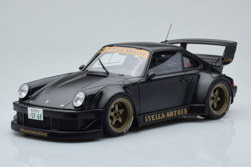 The Porsche 911 964 RWB Stella Artois Negro GT Spirit 1:18 is crafted from Resina. High-quality resin with hand-painted details and limited production runs. Resin models offer exceptional detail and are prized by serious collectors for their craftsmanship.