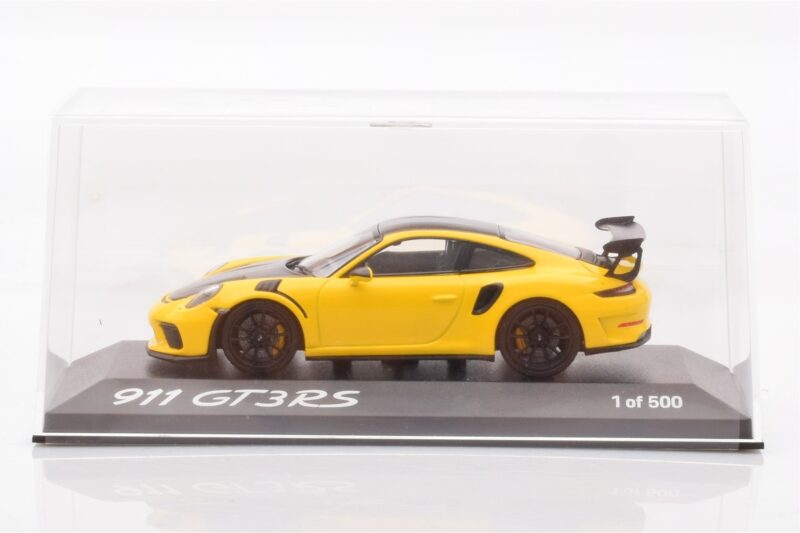 The Porsche 911 991.2 GT3 RS Amarillo Minichamps 1:43 is crafted from Metal. Die-cast zinc alloy body with detailed plastic parts, rubber tires, and high-quality paint finish. Die-cast models are known for their weight, durability, and realistic feel.