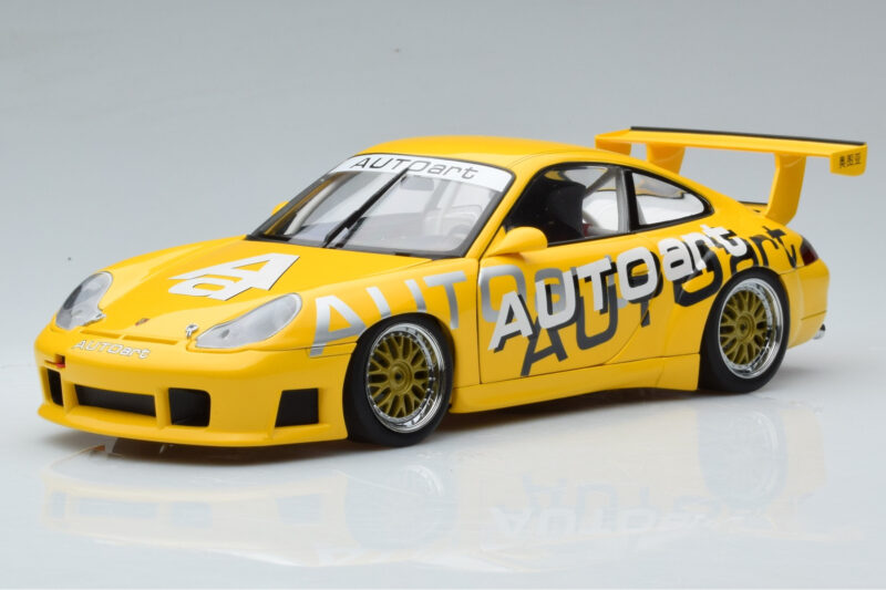 The Porsche 911 996 GT3 Cup AUTOart Livery AUTOart 1:18 is crafted from Metal. Die-cast zinc alloy body with detailed plastic parts, rubber tires, and high-quality paint finish. Die-cast models are known for their weight, durability, and realistic feel.