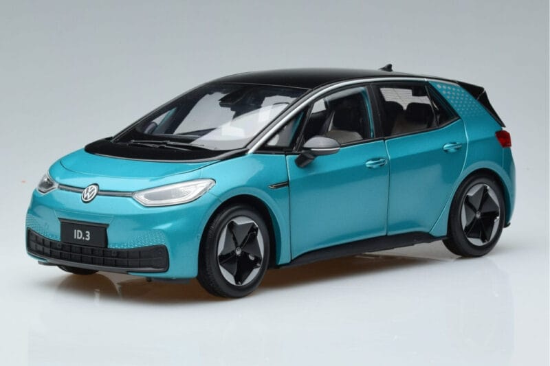 The Volkswagen ID.3 Verde FAW 1:18 is crafted from Metal. Die-cast zinc alloy body with detailed plastic parts, rubber tires, and high-quality paint finish. Die-cast models are known for their weight, durability, and realistic feel.